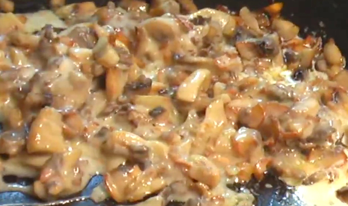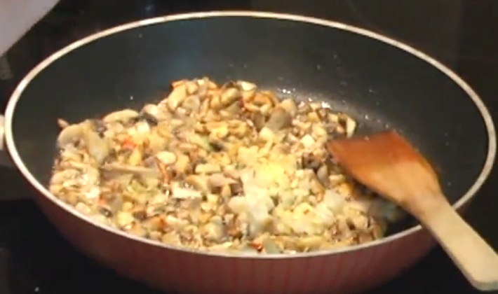 Ajoutez aux champignons, mélangez et la garniture est prête.
