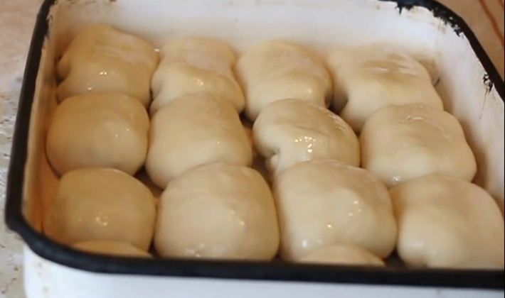 Graisser la feuille avec de l'huile, mettre les tartes et laisser reposer pendant 10-15 minutes.