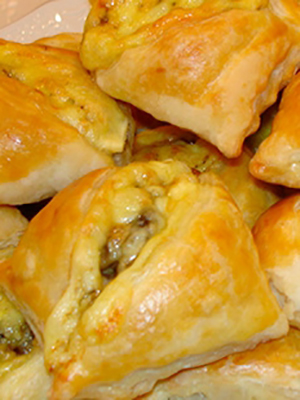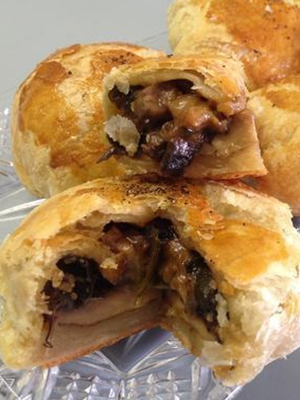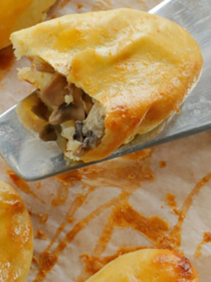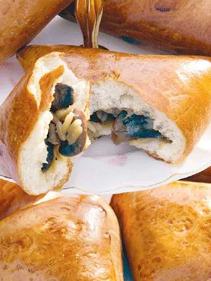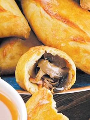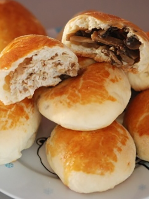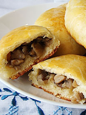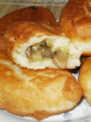 Les pâtés sont particulièrement bons de la pâte feuilletée, ce qui est un peu difficile à faire à la maison. Les tartes aux champignons peuvent être frites dans une poêle ou cuites au four.