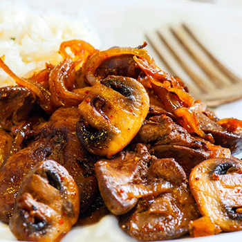 - Foie de poulet cuit avec des champignons dans une mijoteuse