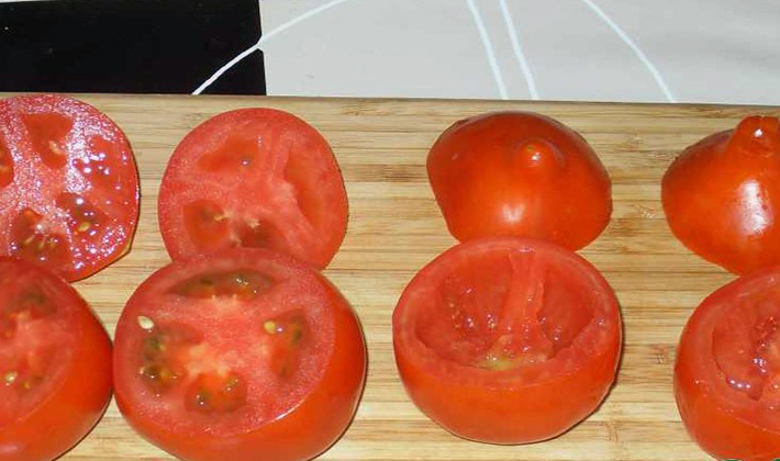 Salade prête à remplir les moitiés de tomates, dont la pulpe est retirée.