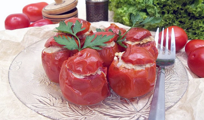 Une salade au foie, aux champignons, aux carottes, aux asperges et aux haricots verts peut être qualifiée d’originale, car contrairement aux salades ordinaires, c’est un mélange d’ingrédients préparés qui remplissent les tomates.