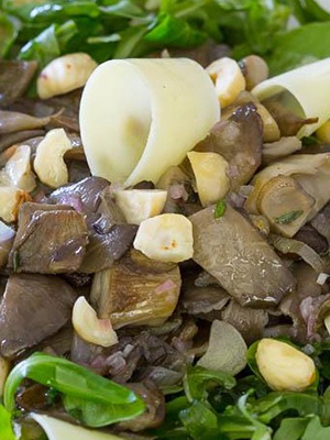 - Salade de foie de boeuf aux champignons, champignons et olives
