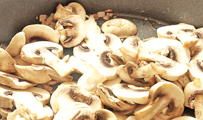 - Ajouter les champignons hachés à l'oignon et faire frire jusqu'à tendreté, environ 10 minutes.