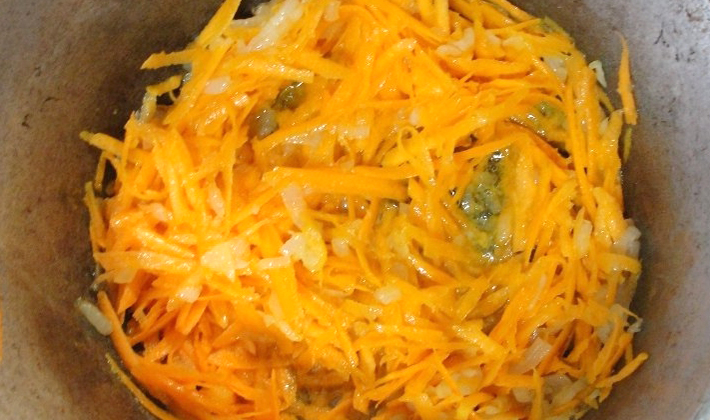 Râpez les carottes et faites-les revenir de la même manière que les oignons.