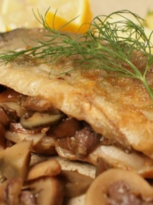 - Disposer le poisson préparé avec des champignons sur des assiettes, verser le jus de citron sur le dessus.