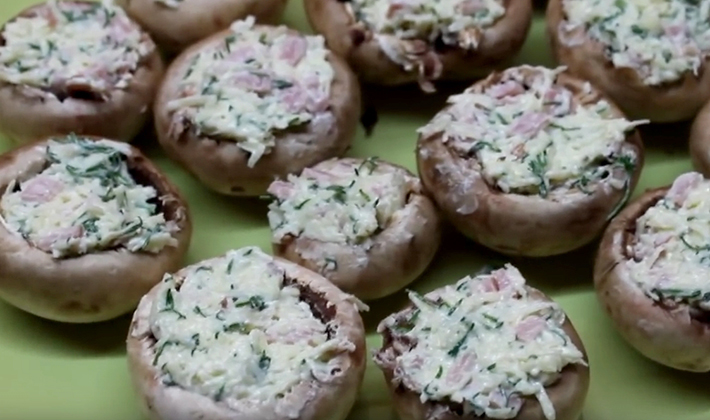 Il existe plusieurs recettes pour la cuisson de champignons farcis combinés avec du jambon, qui sont bons comme apéritif savoureux. Vous pouvez le servir chaud ou froid.