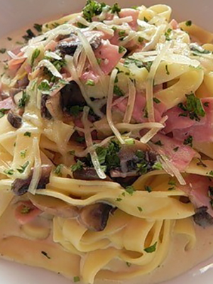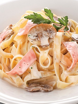 - Fettuccine à la sauce crémeuse aux champignons et jambon