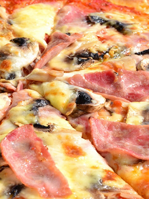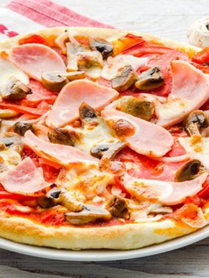 - Pizza au jambon, aux tomates et aux champignons