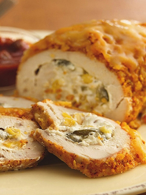 Ces rouleaux de fromage en combinaison avec du jambon et des champignons se préparent en deux étapes: