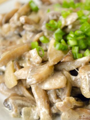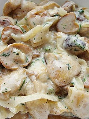- Champignons tendres cuits à la crème au four