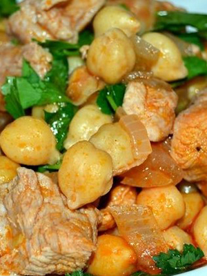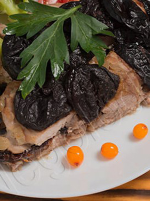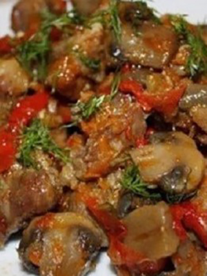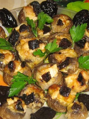 - Champignons cuits dans la mayonnaise avec du porc et des pruneaux