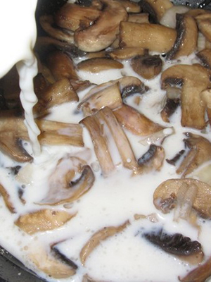 - Champignons cuits au lait avec des légumes
