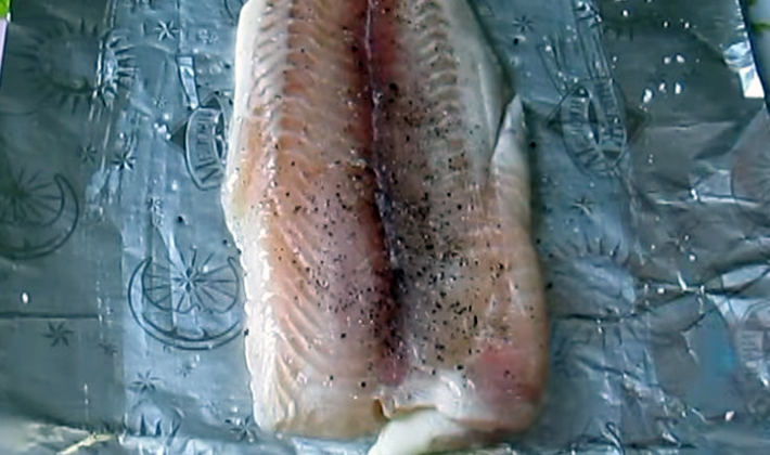 - Saler les morceaux de poisson, saupoudrer de poivre, les rouler dans la farine et les faire revenir dans une poêle avec du beurre.
