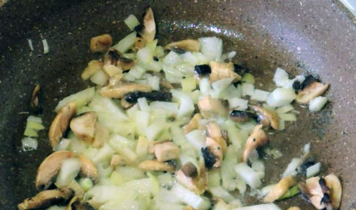 - Mélangez le fromage et les champignons, salez, poivrez, ajoutez des légumes verts finement hachés.