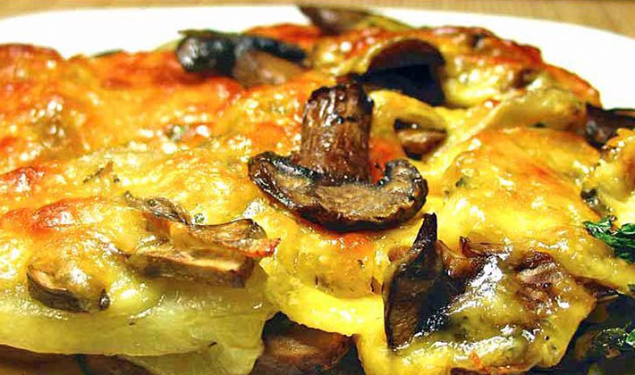 Laissez les champignons champignon avec les pommes de terre et le fromage au four pendant 40 à 45 minutes ou jusqu'à ce que les pommes de terre soient ramollies et qu'une croûte brune se forme.