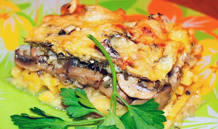 - Un tel apéritif de rutabaga et de champignons avec du fromage au four viendra décorer et diversifier la table de fête et deviendra le clou de la fête.