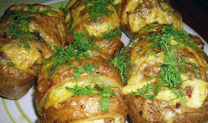 - Pomme de terre au four avec du fromage et des champignons marinés
