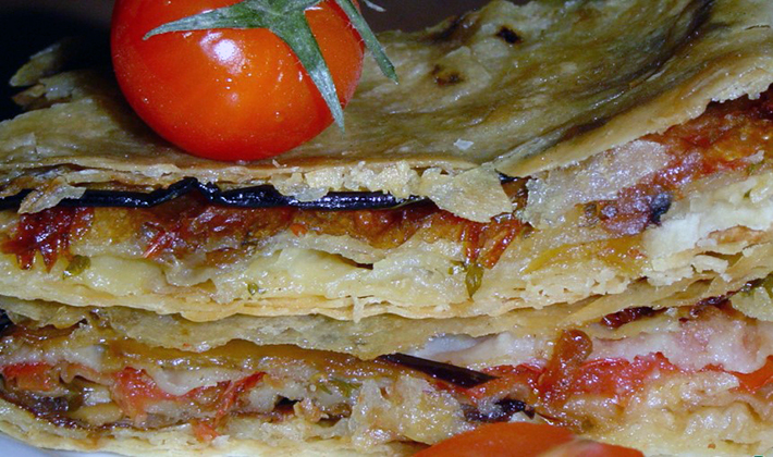 - Four à champignons, fromage, tarte à la tomate et aux aubergines