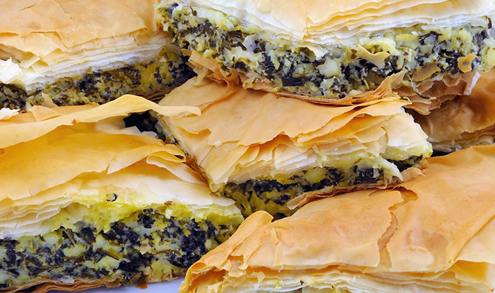 - Tourte aux champignons, fromage feta, fromage et œufs