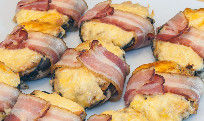 Recette de champignon farcie au four avec du bacon, du bacon et du fromage au four