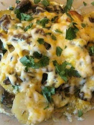 - Champignons cuits au four avec poulet, oignons et fromage
