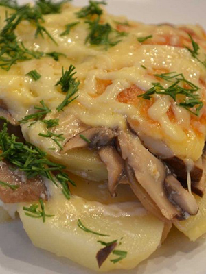Il est préférable de cuire les champignons frits avec le poulet et le fromage par étapes, ce qui donnera aux cuisiniers débutants l’opportunité de faire face au processus plus rapidement.