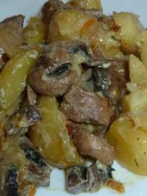 Après le nettoyage, couper les champignons en tranches, mettre dans la viande et laisser mijoter pendant 10 minutes.