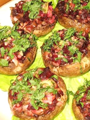 Champignons farcis au fromage et aux noix.