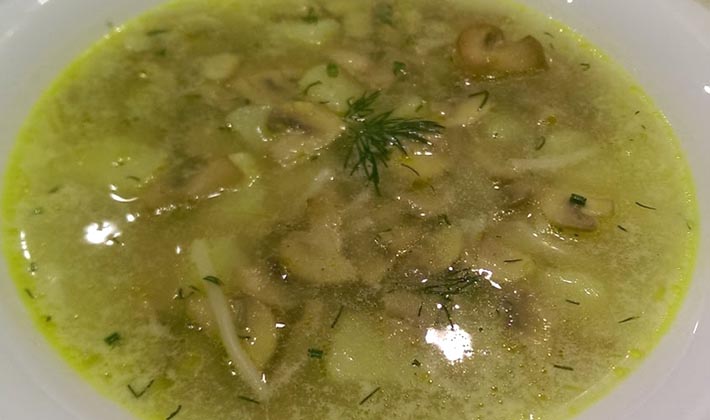 Soupe de champignons marinés au micro-ondes.