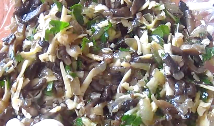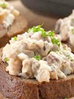 - Passer les champignons marinés dans un hachoir à viande et mélanger avec du beurre, saler et poivrer.