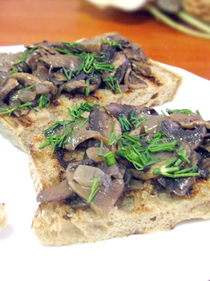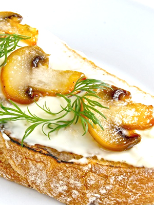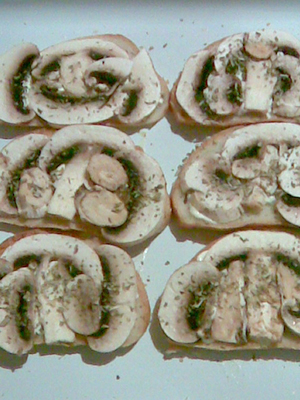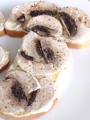 Sandwiches aux champignons crus et à l'ail.