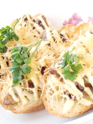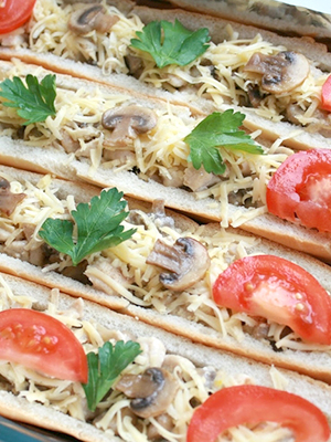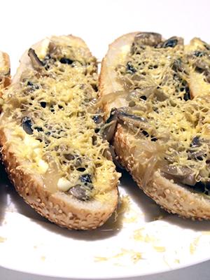 Sandwichs chauds aux champignons et fromage au four.