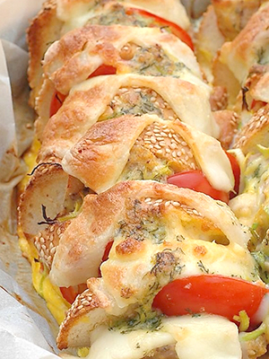 - Sandwichs chauds à la baguette avec viande et champignons
