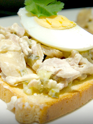- La masse obtenue est étalée sur du pain, les sandwichs sont décorés de verdures.
