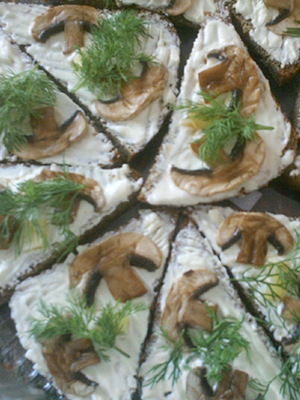 Sandwiches aux champignons marinés et à la cerise.