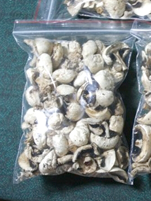 Certaines femmes au foyer font sécher les champignons en poudre, utilisés comme assaisonnement.