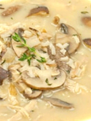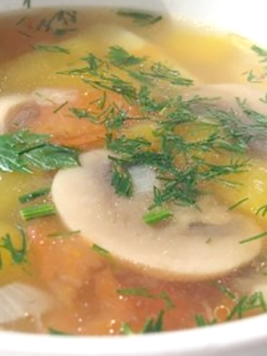 Soupe diététique au poulet et aux champignons.