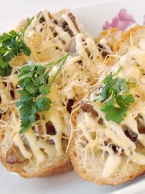 - Couper les tomates en cercles, râper le fromage sur une râpe fine. Couper le pain en petites tranches, y déposer les champignons cuits, garnir d'une tranche de tomate, de 3 olives, parsemer de fromage râpé. Mettez les sandwichs au four,