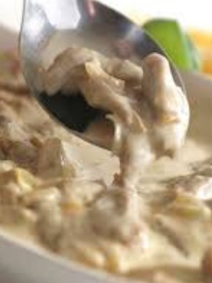 - Dissoudre la gélatine préalablement trempée et gonflée dans un bouillon de champignons, saler et chauffer jusqu'à dissolution complète de la gélatine.
