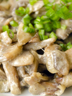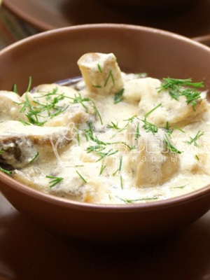 Une recette avec une photo de cuisson de champignons avec de la crème et des légumes aidera les ménagères à bien faire le processus.