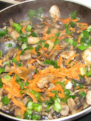 - Après le nettoyage, coupez les pailles en lanières et faites-les frire dans l'huile avec les herbes de Provence jusqu'à tendreté (les champignons doivent devenir dorés).