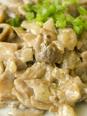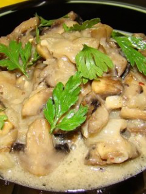 - Champignons savoureux cuits à la crème sure avec de la viande