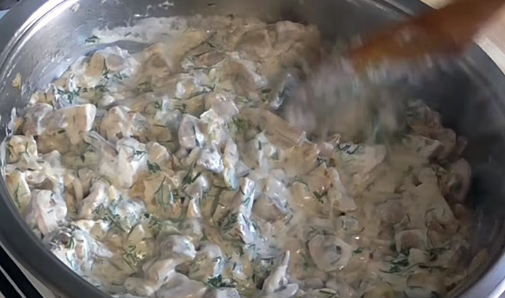 - Une recette simple pour les champignons à la crème sure dans une casserole