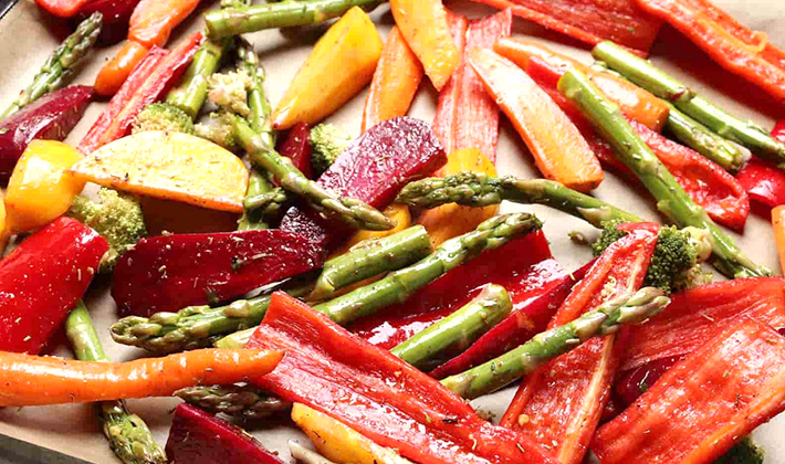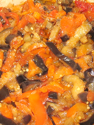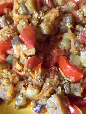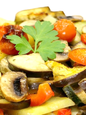 - Aubergines cuites au four avec champignons, carottes et tomates au four