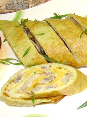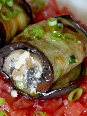 Placez le mélange fini sur les assiettes d'aubergines à l'aide d'une cuillère à soupe. Envelopper les aubergines avec les champignons en rouleaux.