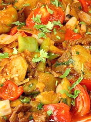 - Couper la viande en fines lanières et les faire frire à feu vif en mélangeant constamment dans la même huile que celle dans laquelle l'oignon a été frit.