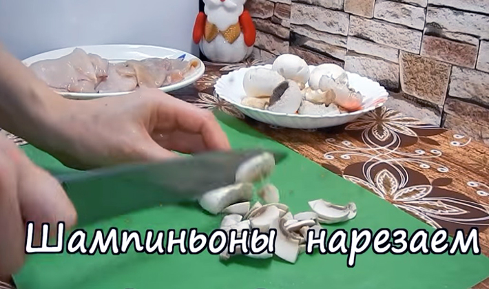 - Lorsque l'eau s'écoule, couper les champignons en tranches.