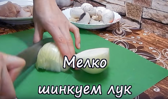 - Rincez les champignons, hachez-les finement. Pelez, lavez, hachez les oignons.