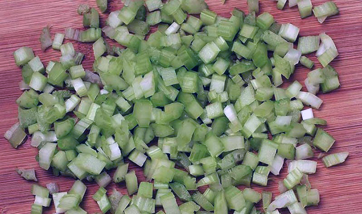 - Lavez et hachez le céleri. Lavez et hachez le persil.